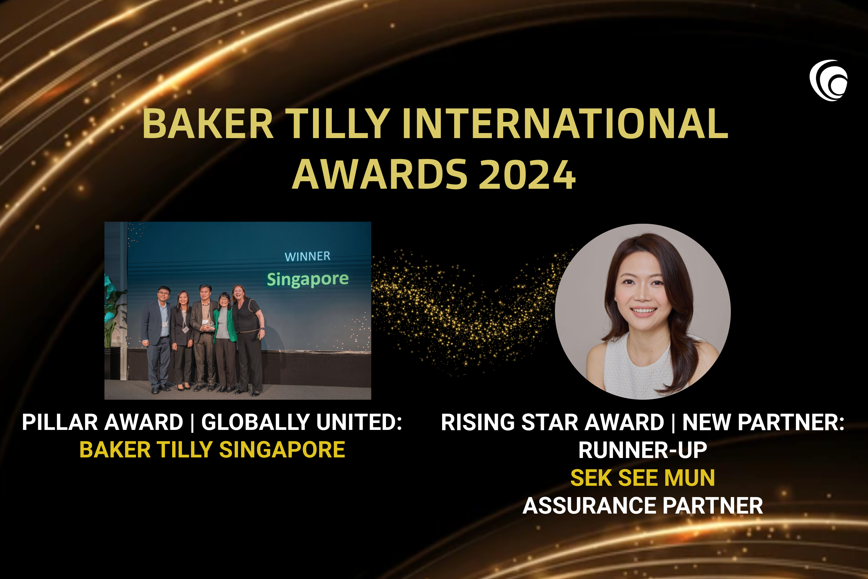 Baker Tilly Singapore is pleased to share that we have won the Globally United Pillar Award, and our Assurance Partner, Sek See Mun, is a runner-up for the New Partner, Rising Star Award, as revealed at the Baker Tilly World Conference 2024 in Vienna!